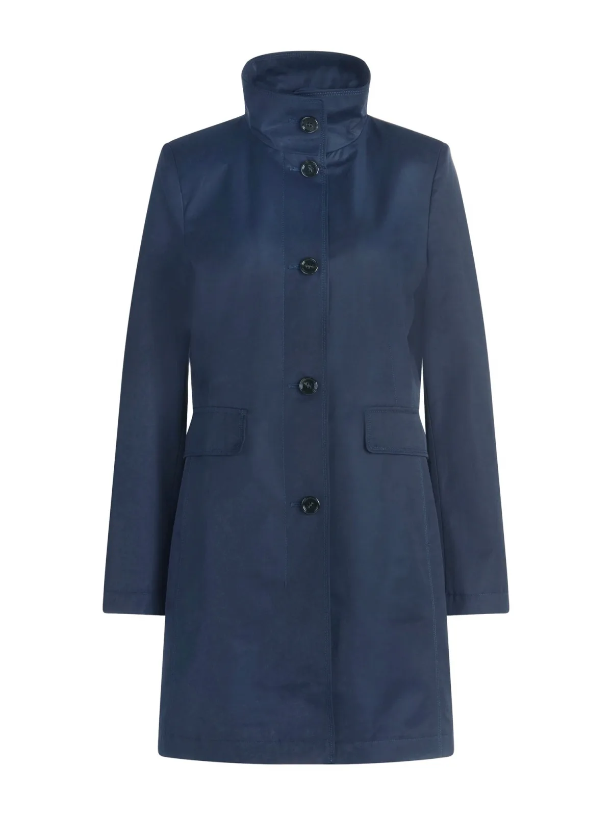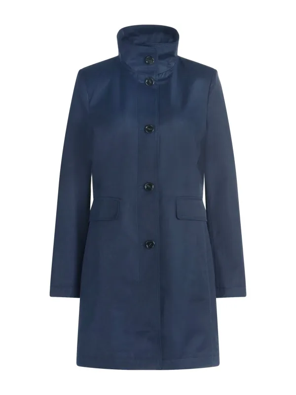 Dames lange jas van Gil Bret;Katoenmix;Slim Fit;Opstaande kraag;Knoopsluiting;Klepzakken;Ruglengte bij maat 36: 86 cm;Schouderbreedte bij maat 36: 39 cm;Borstwijdte bij maat 36: 46 cm;Mouwlengte bij maat 36: 65 cm