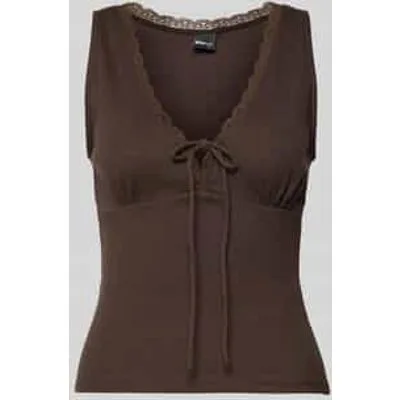 Dames top met bandjes van Gina Tricot;mix van katoen en elastaan;slim fit;riblook;met kant;V-hals;vetersluiting;ruglengte bij maat s: 50 cm