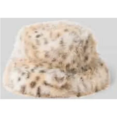 Dameshoed van Gina Tricot;Imitatiebont;Afgeronde pasvorm;All-over dierenprint;Vissershoedje-look