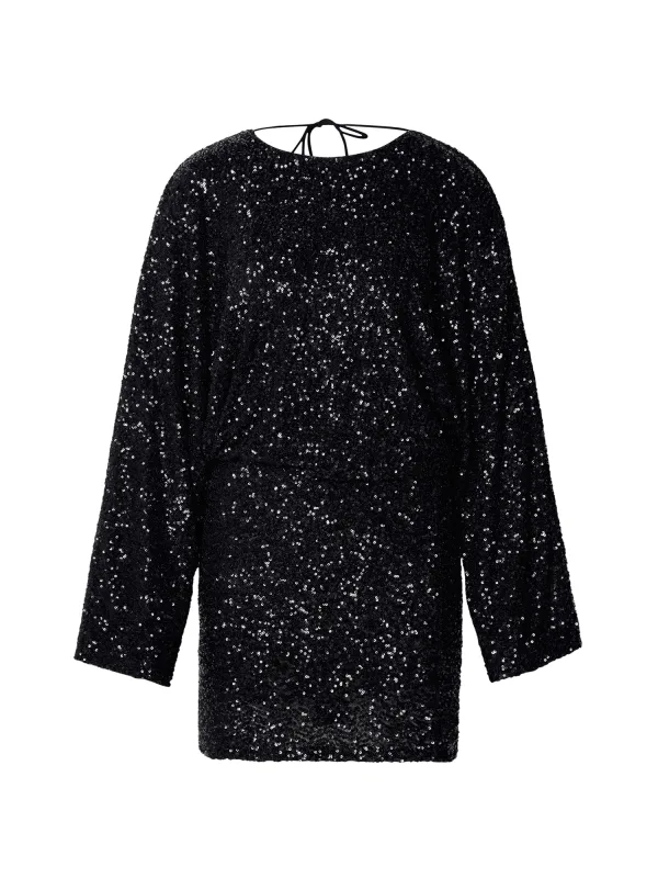 Mini-jurk van Gina Tricot voor dames;Materiaalmix met stretch;Getailleerd model;Ronde hals;Met pailletten;Niet-doorschijnende onderjurk;Ruglengte bij maat S: 86 cm;Borstomvang bij maat S: 50 cm;Mouwlengte bij maat S: 63 cm