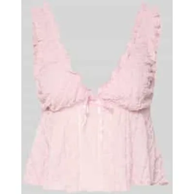 dames top van Gina Tricot;materiaalmix met stretch;nauwsluitend model;kant;V-hals;Strikdetail;Ruglengte bij maat S: 23 cm