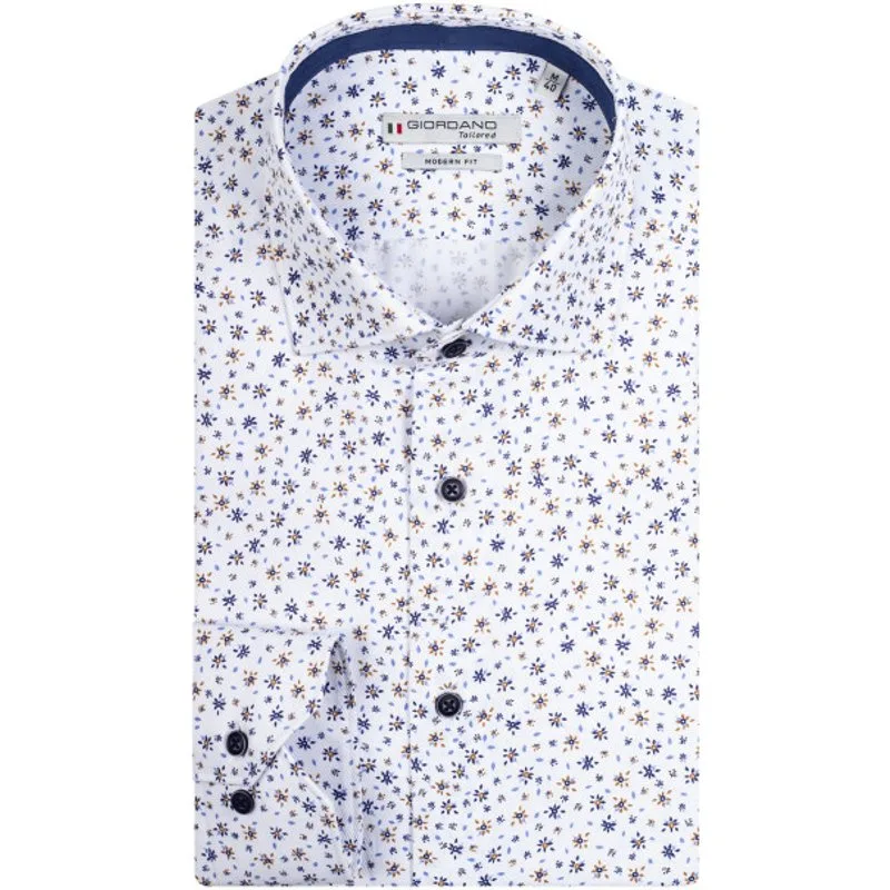 Giordano Tailored heren overhemd met een allover dessin. Modern fit 52% Katoen/48% Polyester Kleurnummer: 10