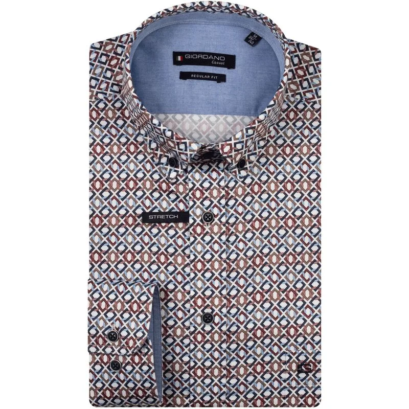 Casual heren overhemd van Giordano. Dit Giordano casual shirt heeft een button-down kraag en een handig borstzakje. Regular fit Borstzakje 97% Katoen/ 3% Elasthan Kleurnummer: 40