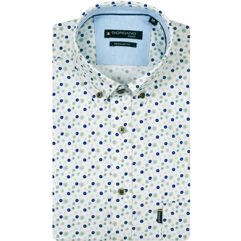 Button-down overhemd met korte mouw van het merk Giordano. Dit Giordano casual overhemd heeft een allover print en handig borstzakje. Regular fit Borstzakje 97% Katoen/ 3% Elasthan Kleurnummer: 70