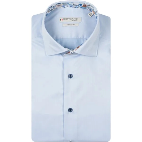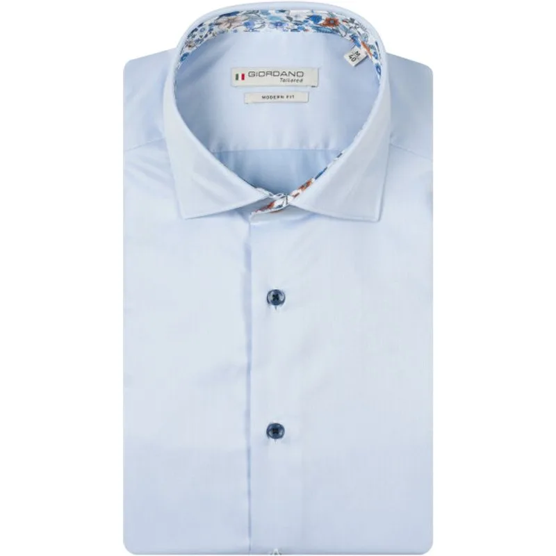 Katoenen uni heren 2-ply overhemd van Giordano. Dit Giordano Tailored heren overhemd heeft korte mouwen en een mooie smalle modern fit pasvorm. De kraag is aan de binnenkant voorzien van een contrasterende bloemenprint. Dit shirt is verkrijgbaar in meerdere effen kleuren en geschikt voor iedere gelegenheid gecombineerd met jeans of chino. Regular fit Borstzakje 100% Katoen Kleurnummer: