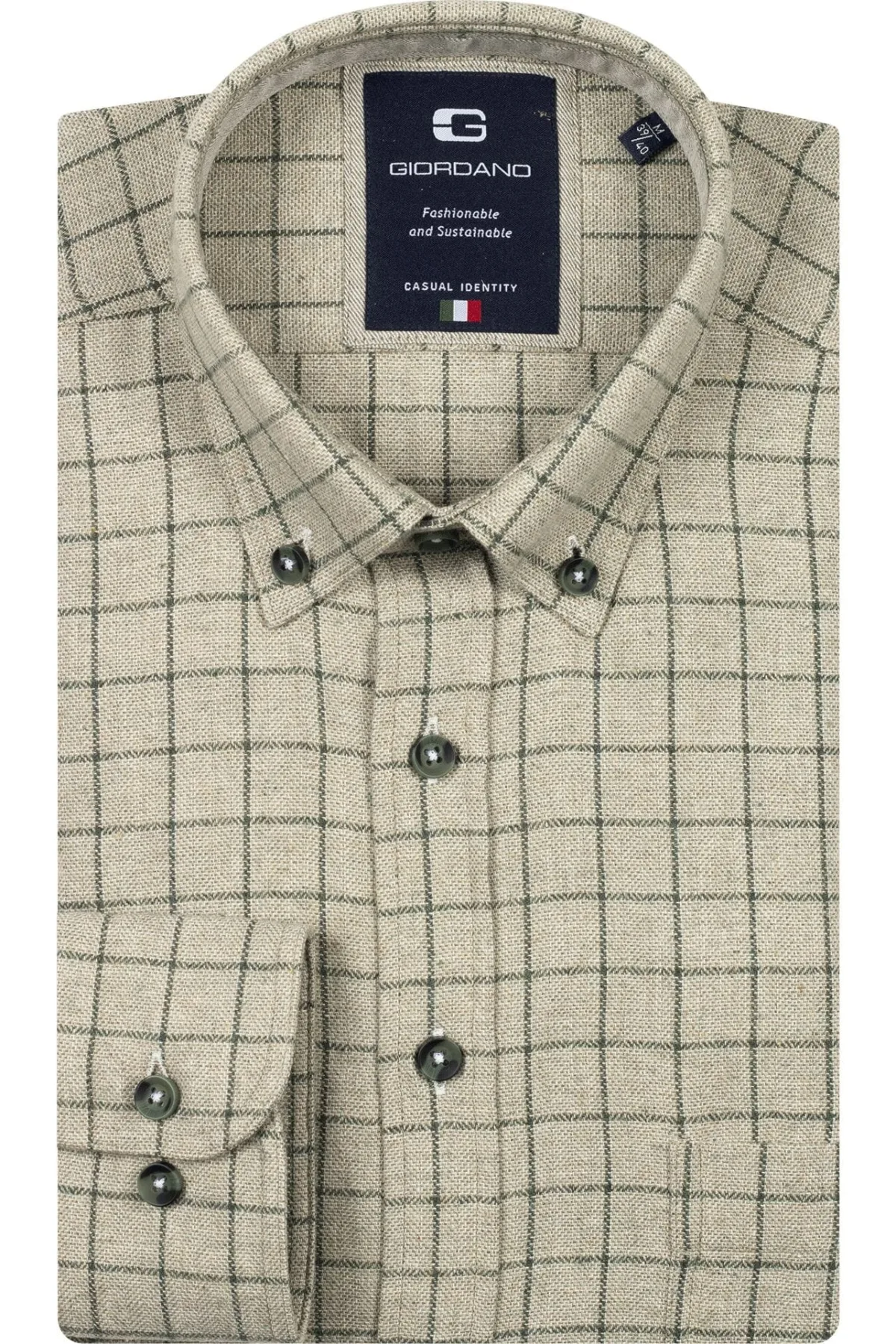 Giordano Flanellen Overhemd groen, Ruit Prijzen