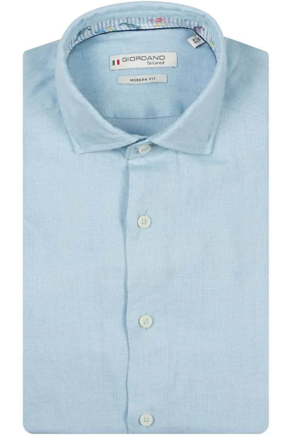 Giordano Linnen Overhemd blauw, Effen Prijzen