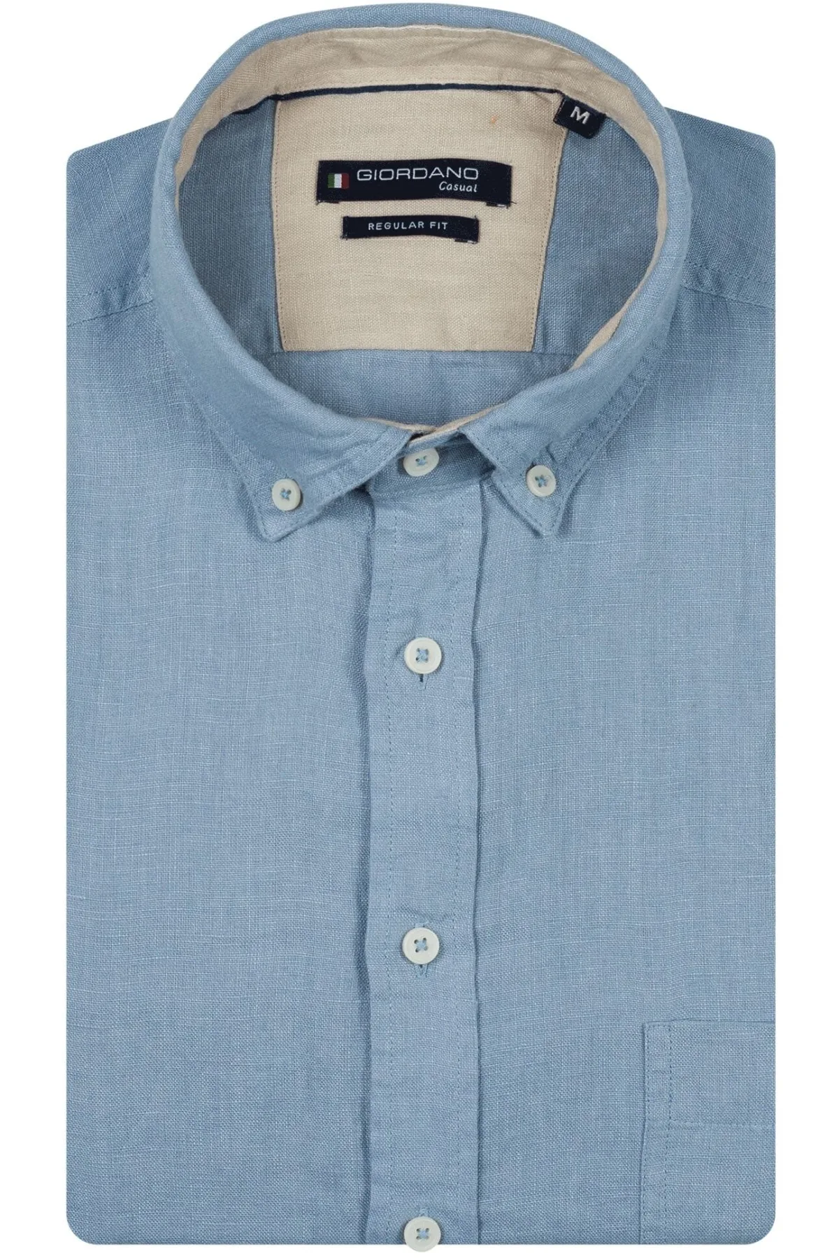 Giordano Linnen Overhemd blauw, Effen Prijzen