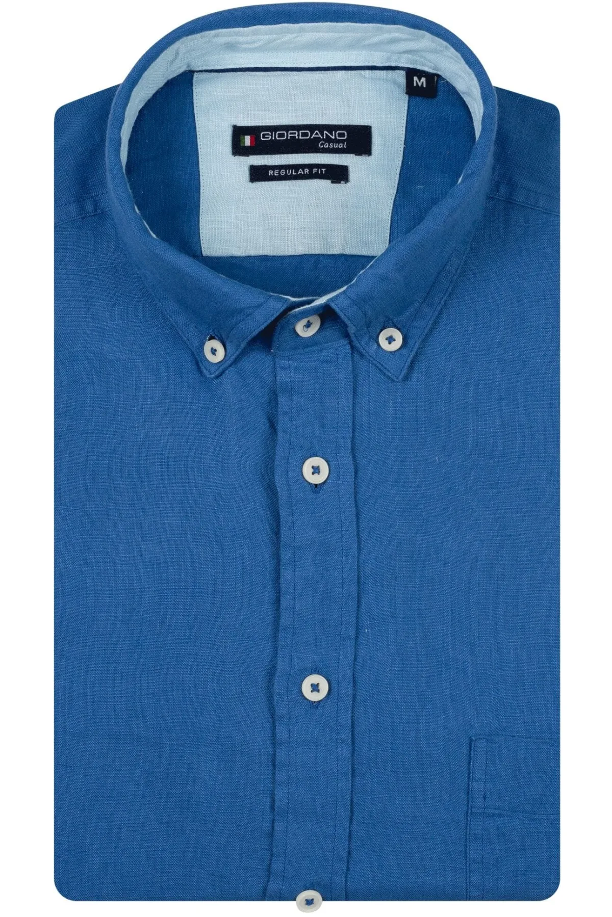 Giordano Linnen Overhemd blauw, Effen Prijzen