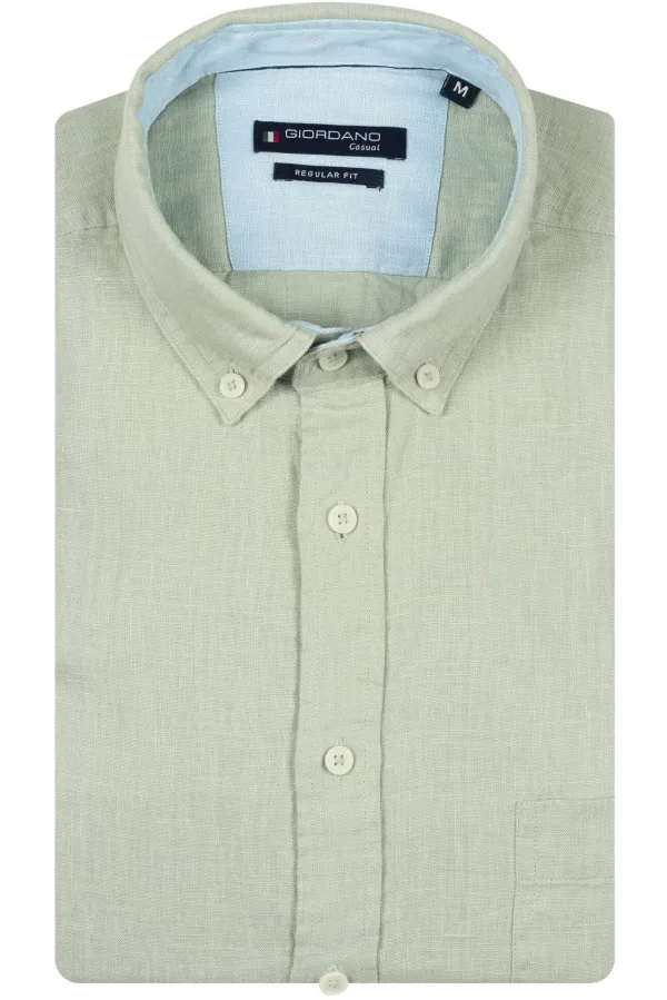 Giordano Linnen Overhemd groen, Effen Prijzen