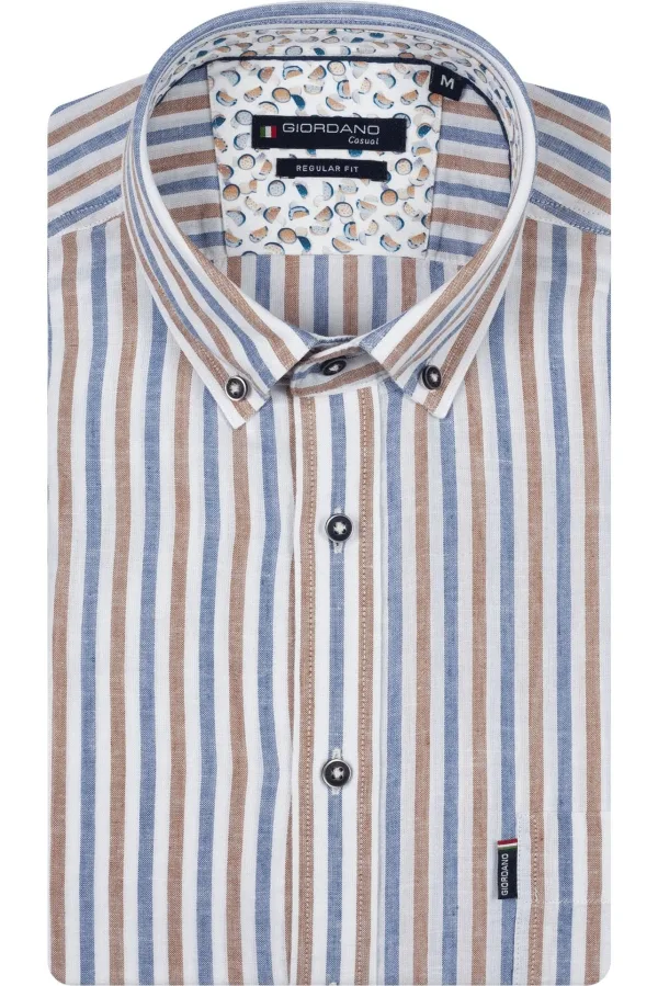 Giordano Ivy Heren Overhemd Button Down kraag Linnenmix Gestreept Overhemd...