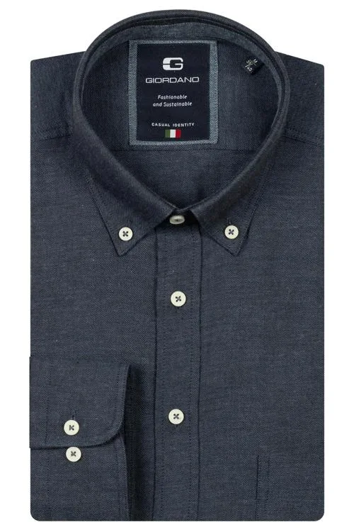 Casual donkerblauw heren overhemd van Giordano. Dit effen Giordano casual shirt heeft een button-down kraag en een handig borstzakje. Regular fit Borstzakje 100% Katoen Kleurnummer: 60