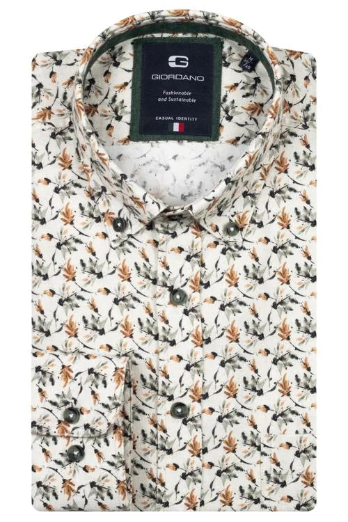 Gebloemd heren overhemd van Giordano. Dit Giordano Casual shirt met lange mouwen heeft een button-down kraag en borstzakje. Regular fit Borstzakje 100% Katoen Kleurnummer: 70