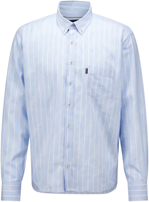 Het overhemd Brando van Giordano is een stijlvol herenoverhemd met een klassieke button down kraag en knopen. Dit business overhemd heeft lange mouwen met manchetten en een subtiel streeppatroon. De zak op de voorzijde biedt praktische opslag, ideaal voor nette gelegenheden.