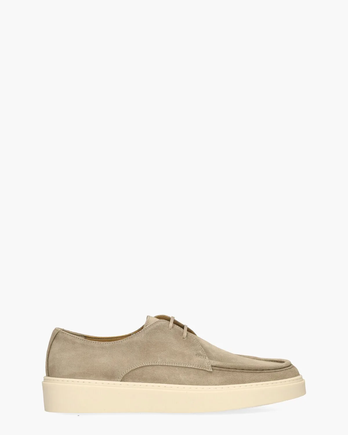 Deze veterschoenen voor heren 13712 van Giorgio1958 zijn een stijlvolle keuze voor een casual-sportieve look. Het bovenwerk van beige suède met een licht washed effect geeft de schoenen subtiele vintage look. De leren binnenvoering en het uitneembare lederen voetbed zorgen voor hoog draagcomfort en een luxe feel. De witte rubberen
