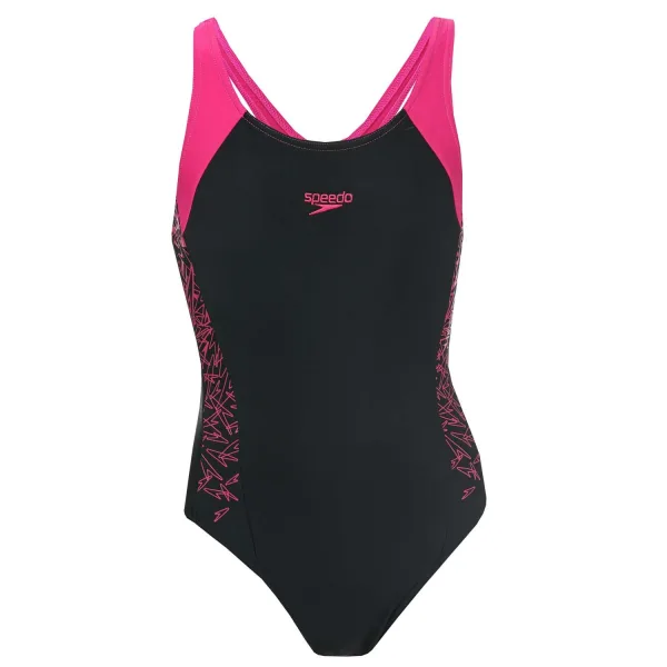 Junior Girls Speedo Splice MSBK Swimsuit in black pink.- Medium neck and modest back opening.- Muscleback design.- Soft and stretchy.- Endurance10 fabric contains Creora HighClo.- Body: 80% Nylon 20% Elastane. Lining: 100% Polyester.- 810844B344Please note that returns will only be accepted if the hygiene label is still attached to the product.