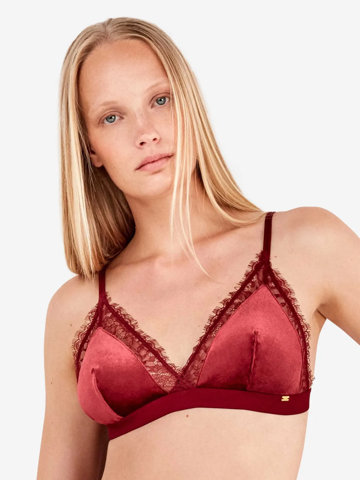 Cup soorten: Soft cup bh; Soort bandjes: Normale bandjes; Bh/bikini type: Triangel; Beugel: Zonder beugel; Type sluiting: Haakjes; Materiaal: Fluweel/Nicky Velours; Motief: Effen; Extra's: Verstelbare bandjes