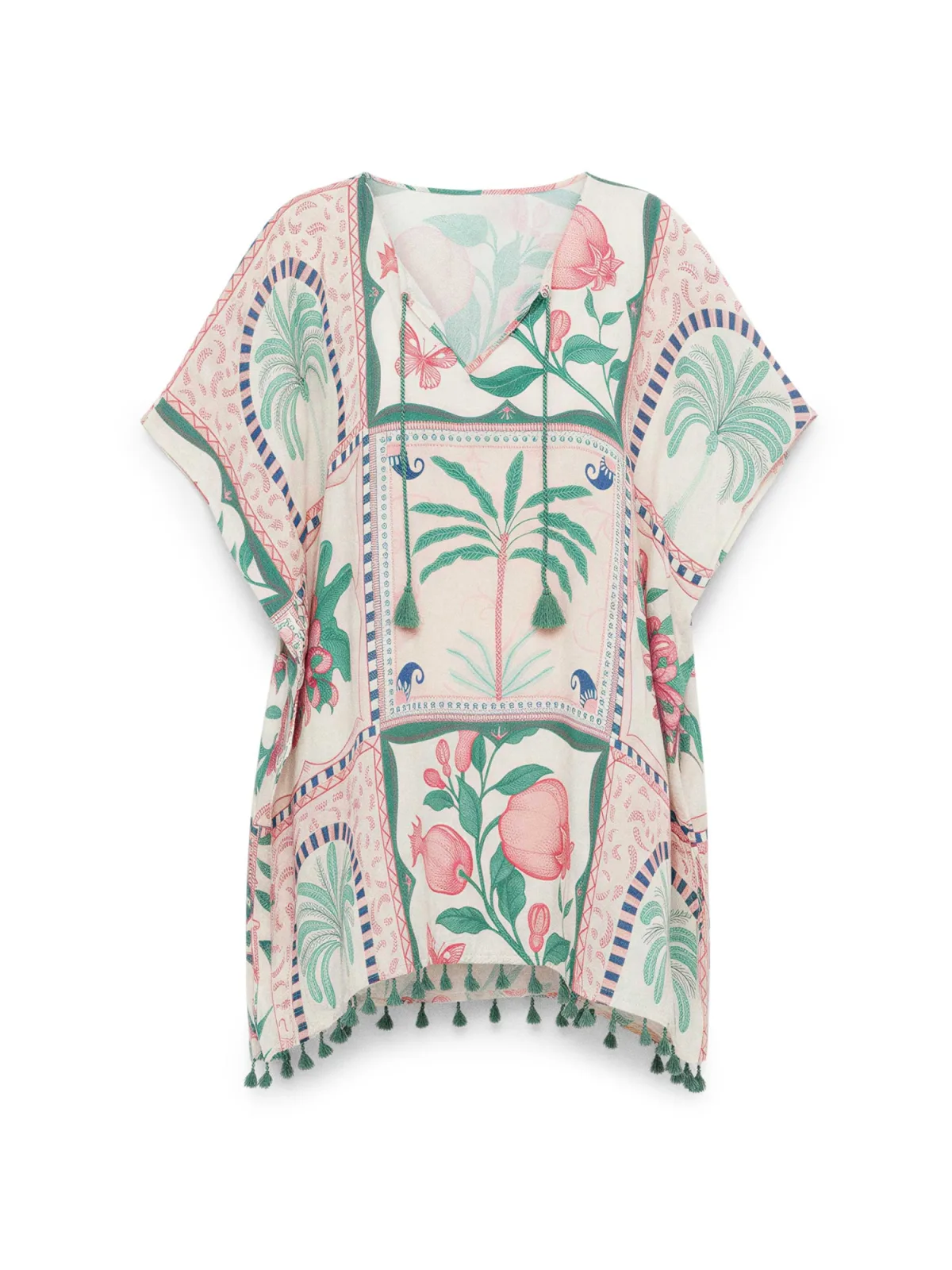 Design: Gevoerde zoom/rand, Pofmouwen; Materiaal: Viscose; Halstype: V-hals; Motief: Tekst print; Extra's: All-over patroon; Lengte: Knielengte; Pasvorm: Losse pasvorm; Armlengte: Halve mouw