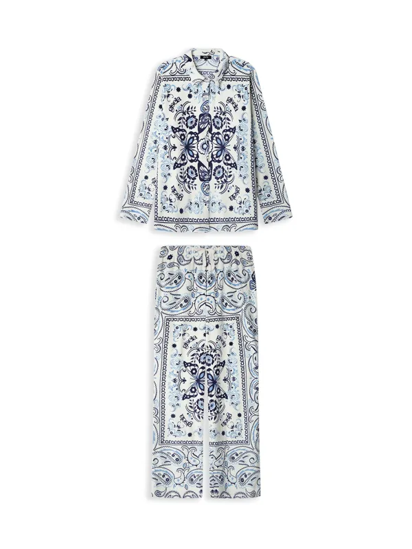 Gisela Pyjama ‘Set’ lichtblauw / donkerblauw / offwhite