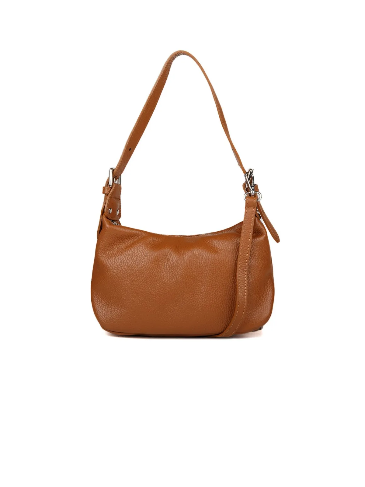 Echte Kalfsleer Tas. Ritssluiting bovenaan. Handvat bovenaan. Eén compartiment met een klein ritszakje. Heeft een klein ritszakje aan de achterkant. Voering: Synthetische stof. Inclusief stofzak. Afmetingen: 28x18x11cm