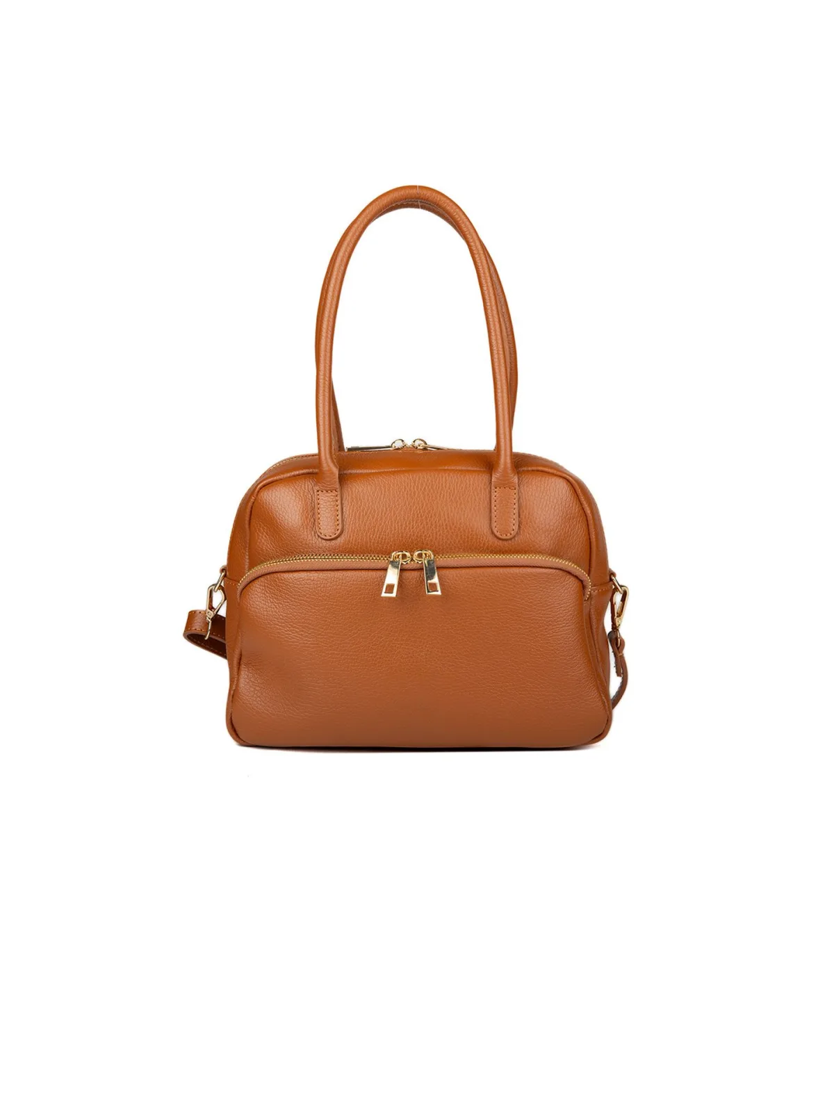 Echte kalfsleren tas. Bovenkant met rits sluiting. Twee handvatten bovenaan. Inclusief een schouderband van 100 cm. Eén groot vak en één klein ritsvak. Bevat een extra ritsvak aan de voorkant van de tas. Voering: synthetische stof. Inclusief stofzak. Afmetingen: 28x22x12 cm.