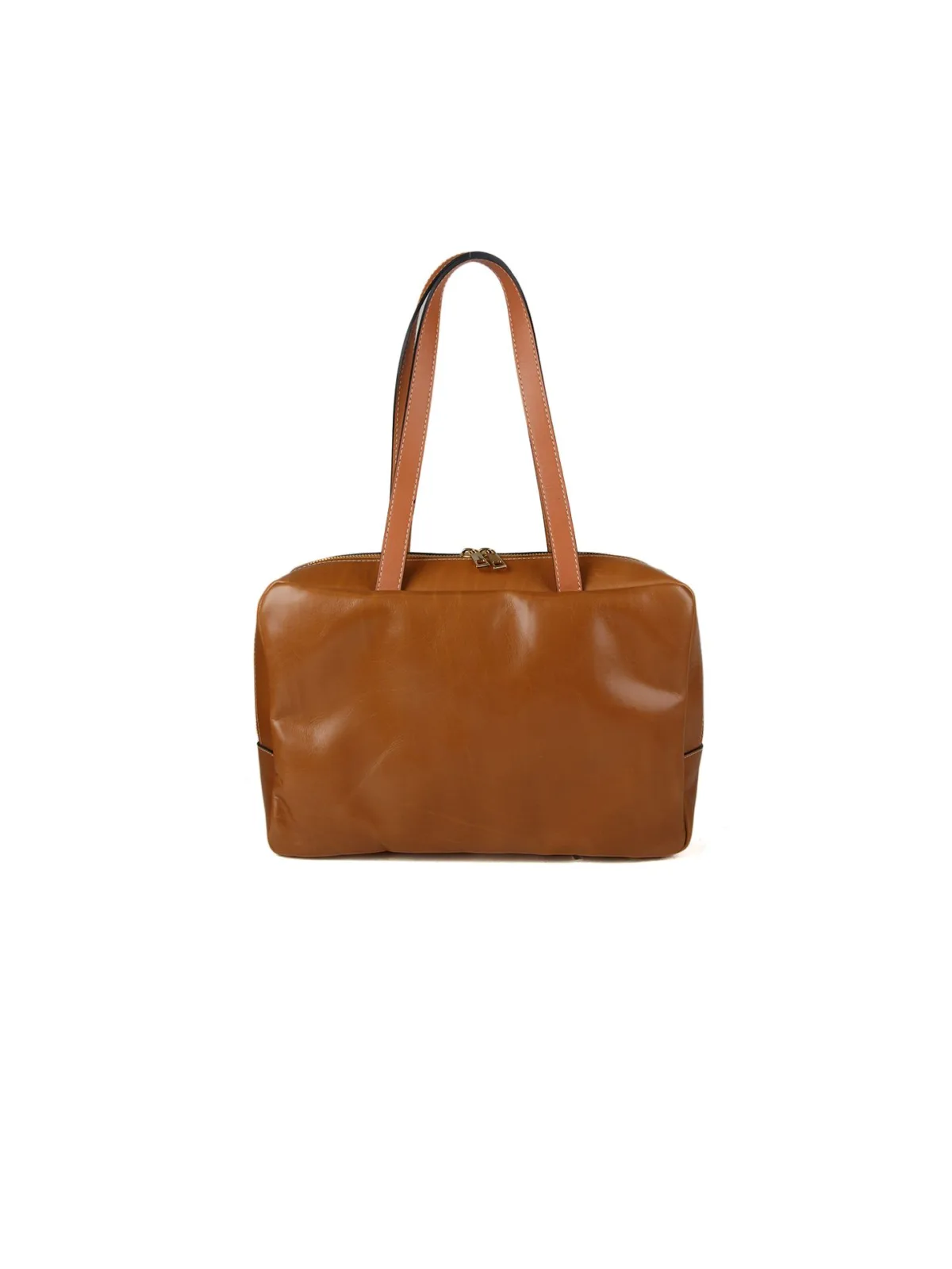 Echte Bycast Leren Tas. Één Groot Compartment Met Rits Sluiting. Één Klein Vak Binnenin Met Rits Sluiting. Voering: Synthetische Stof. Inclusief Stofzak. Afmetingen: 33x21x12cm