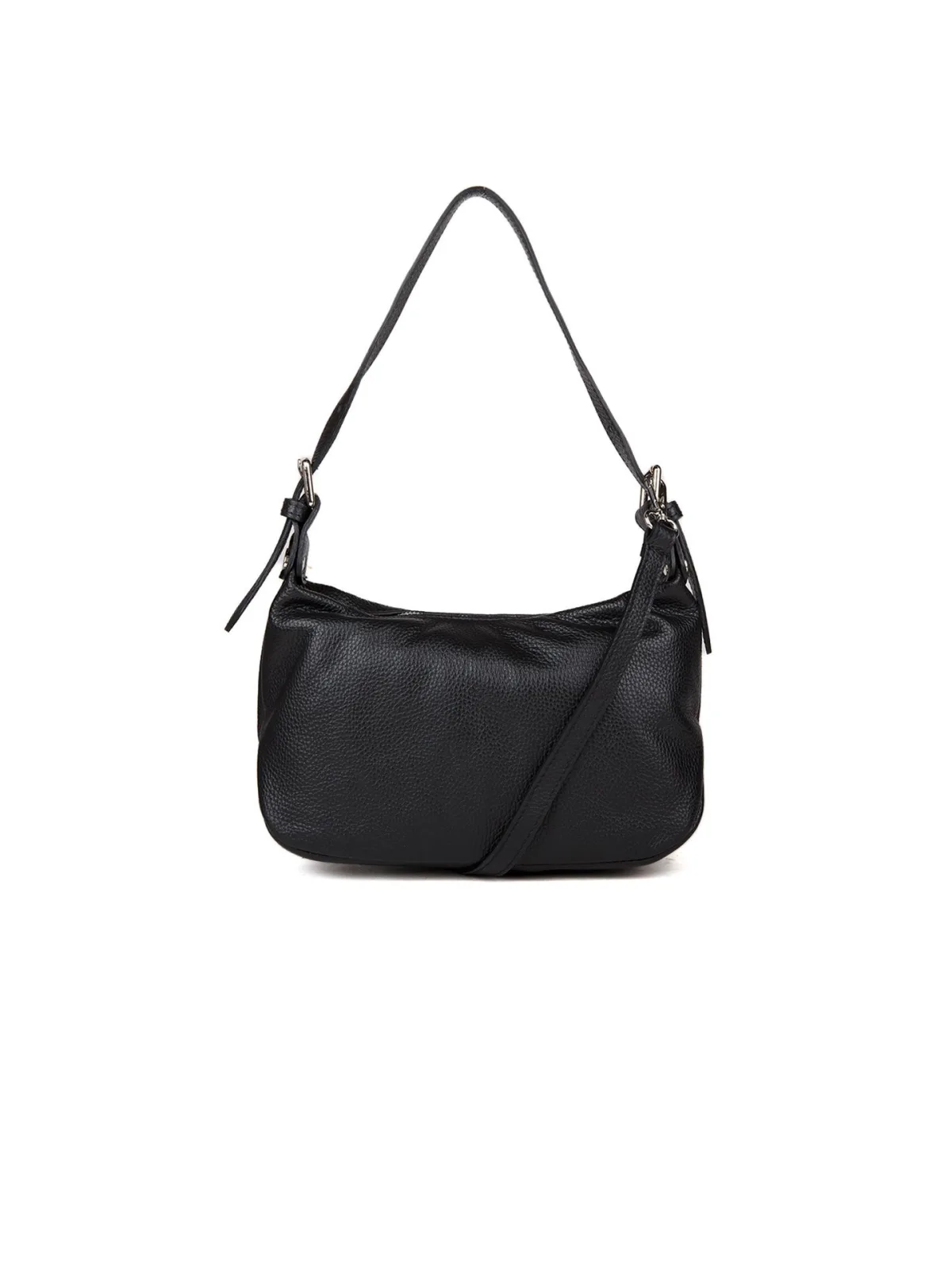 Echte kalfsleren tas. Bovenritssluiting. Handvat. Één compartiment met een klein ritsvak. Bevat een klein ritsvak aan de achterkant. Voering: Synthetische stof. Inclusief stofzak. Afmetingen: 28x18x11 cm.