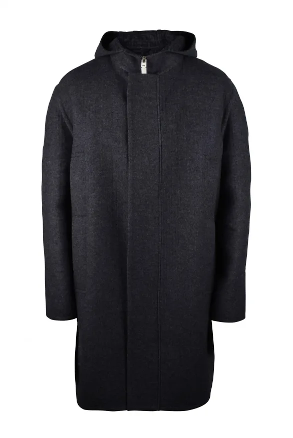 Givenchy grijze wol/zijde/kasjmier jas met capuchon.Geribbelde manchetten en zoom.Givenchy voering met logoprint.Lange mouwen.Omboorde zakken aan de voorkant.Verborgen ritssluiting aan de voorkant.Gemaakt in Italië.