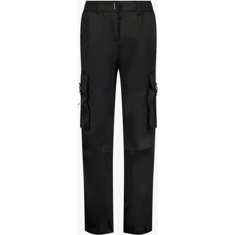 H30766 09B BLACK SS25satijnen cargobroekzwartkatoenmixsatijn gewevenverborgen sluiting voorzijdeelastische taillebandriemlussentwee steekzakken aan de zijkantgeborduurd logo aan de zijkantrechte beenGivenchy Kids