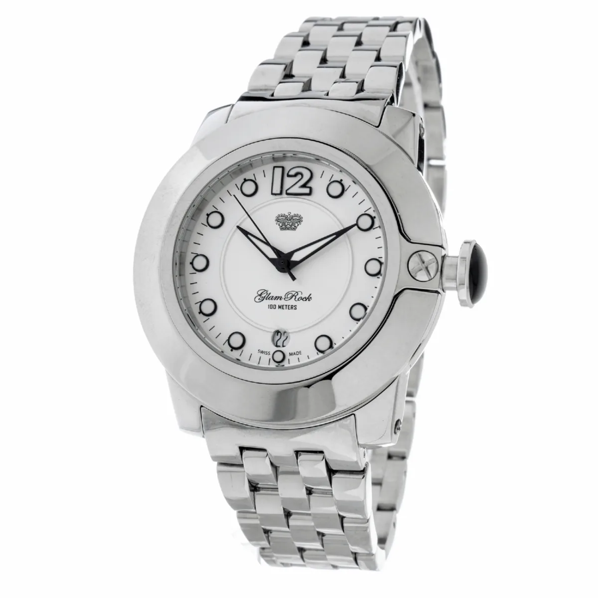 Glam Rock Dameshorloge Kwarts Zilver• Materiaal kastdeksel: Staal• Soort glas: Saffier• Materiaal Band: Roestvrij Staal• Kleur kast: Zilver• Waterdichtheid: 100 m (10 ATM)• Diameter: 44 mm