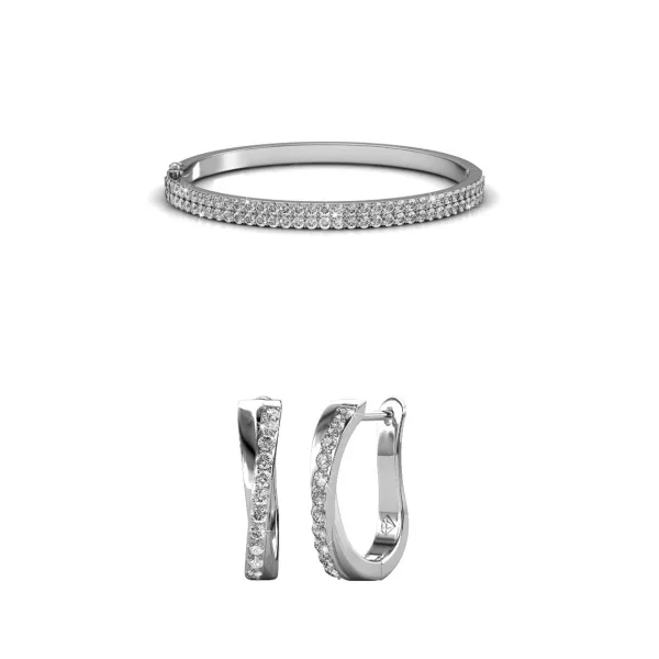 Samenstelling: Messing Afwerking: Rhodium Plated Steensoort: Oostenrijks kristal Aantal stenen (st.): 100 Steenkleur: Kristal Afmetingen oorbellen (mm): 15 x 6 Diameter armband (mm): 55