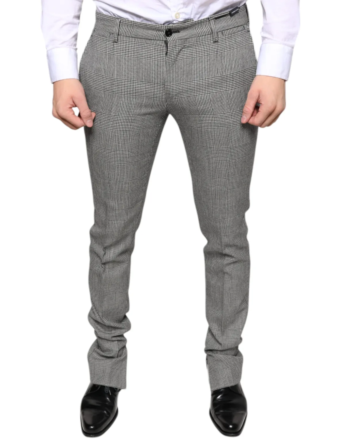 Zet een stap naar buiten, val op en straal je aanwezigheid uit. Deze Dolce & Gabbana broek biedt Italiaanse verfijning met een moderne twist. Geniet van uitzonderlijk comfort en kwaliteit dankzij de luxueuze wol- en katoenmix. De slim fit snit zorgt voor een stijlvolle silhouette. Het tijdloze glen plaid patroon maakt indruk bij formele gelegenheden en belangrijke vergaderingen. Ervaar technologie voor comfort de hele dag door. Met hun duurzame, onderhoudsarme constructie passen deze broeken naadloos in je professionele garderobe en bieden ze duurzame stijl en zelfvertrouwen.