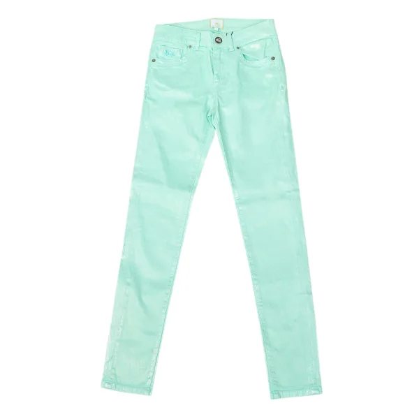 Stretchbroek. Turquoise groen Bas met skinny snit. Helder effect. Rits- en knoopsluiting. Twee zakken aan de voorkant en minizakje met geborduurd merklogodetail. Twee open zakken op de achterkant. Riemlussen. Naden in toon zichtbaar. Samenstelling: 97% Katoen - 3% Elastan Wasvoorschriften: - Wassen op maximaal 40ºC. - Strijken op gemiddelde temperatuur, max. 110 ° C. - Mag in de droger. - Niet bleken. - Kan niet chemisch gereinigd worden. Samenstelling: 97% Katoen, 3% Elastaan Onderhoud: - Maximaal wassen op 40ºC. - Strijken op gemiddelde temperatuur, max. 110ºC. - Kan in de droger. - Geen bleekmiddel gebruiken. - Kan niet chemisch gereinigd worden.