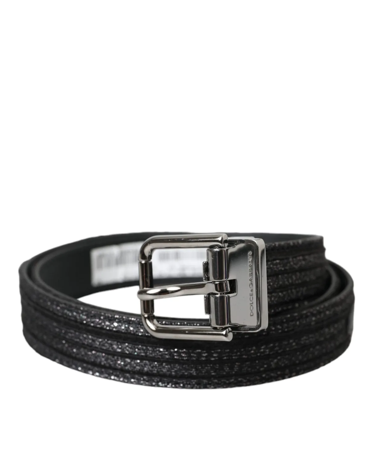 Verhoog, laat schitteren en definieer je stijl. Deze Dolce & Gabbana riem voegt een vleugje Italiaanse glamour toe aan elke look. Het hoogwaardige zwarte leer, afgewerkt met glinsterende zilveren glitter, vangt zowel het licht als de aandacht. De zilverkleurige gesp biedt een klassieke, verfijnde tegenhanger. Geniet van duurzame, onderhoudsarme draagcomfort door de eenvoudige bouw. Perfect om een statement toe te voegen aan jeans of een jurk te accentueren, deze riem geïntegreert naadloos in je garderobe en biedt een luxe touch voor elke gelegenheid.