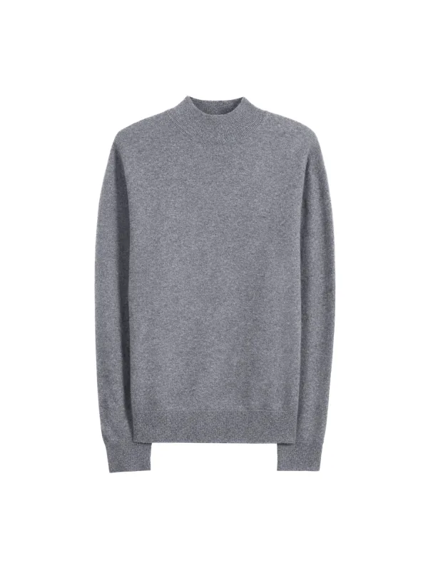 GOBI Cashmere Trui ‘Men’s Timeless Mock Neck Cashmere Sweater’ grijs