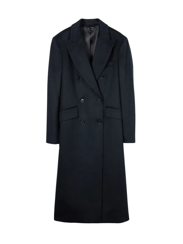GOBI Cashmere Tussenmantel ‘Double-Breasted Long Coat’ zwart