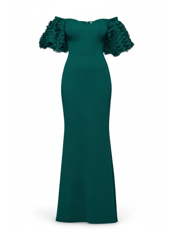 Maak een onweerstaanbare entree met de Goddiva Off The Shoulder 3D Maxi jurk met ballonmouwen in verbluffend smaragdgroen. Ontworpen met een flatterende hartvormige halslijn en korte lantaenmouwen, straalt de jurk een vrouwelijke en verleidelijke silhouet uit. De 3D textuur ballonnmouwen geven een eigentijdse chique touch, terwijl de zeemeerminnenzoom een gracieuze afwerking creëert die de grond kust, perfect voor speciale gelegenheden en avonden. Het smaragdgroen glanst met een luxe diepte, waardoor het ideaal is voor bruiloften, feesten of elk evenement waar je moeiteloos elegant wilt zijn. Het veelzijdige ontwerp stelt je in staat om de jurk opnieuw te dragen voor cocktailavonden of verfijnde diners, en biedt een high-end look zonder de prijs van een designer. Beperkte editie en exquisiet gedetailleerd, deze jurk voegt een gedurfde stijl toe aan elke garderobe met een opvallende smaragdgroene tint.
