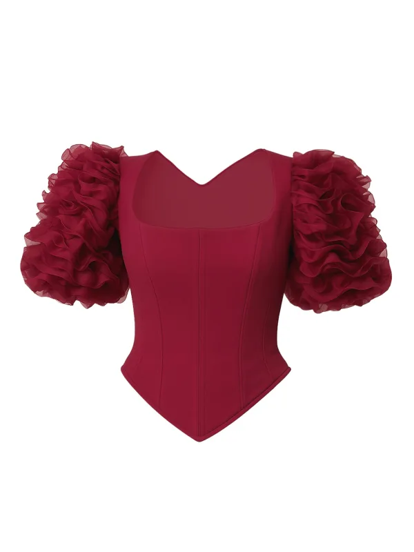 Blouse type: Blouseshirt; Design: Pofmouwen; Type sluiting: Ritssluiting; Motief: Effen; Pasvorm: Slanke pasvorm; Armlengte: Kwartmouw; Lengte: Korte pasvorm