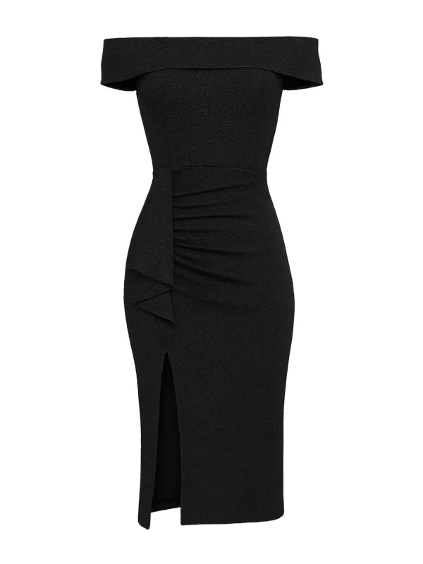 Design: Gevoerde zoom/rand; Type sluiting: Ritssluiting; Halstype: Carmen hals; Motief: Effen; Extra's: Op staal naden; Lengte: Knielengte; Pasvorm: Normale pasvorm; Armlengte: Mouwloos