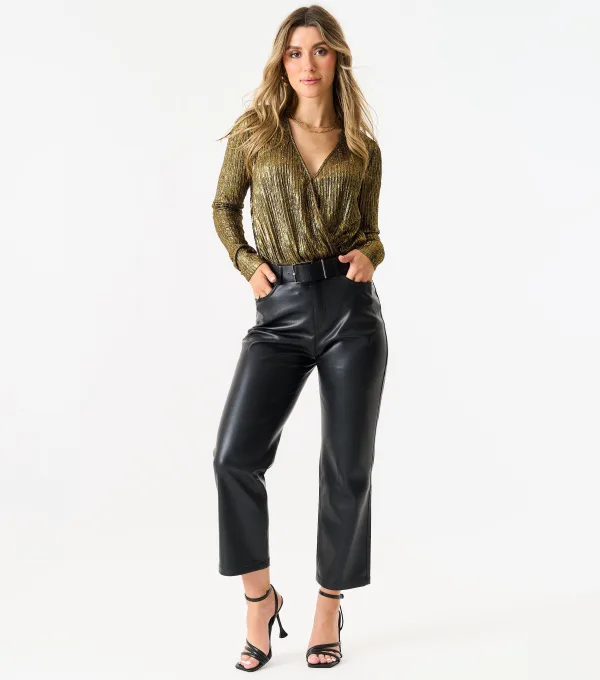 Gold Metallic Plisse Wrap Front Bodysuit Prijzen