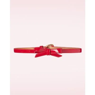 Deze 50s Gold Rush Lacquer Bow Belt in Lipstick Red heeft ons weten te strikken! Het schattige strikje op deze smalle ceintuur kun je makkelijk verplaatsen (of eraf halen) waardoor je eindeloos kunt blijven variëren ;-) Wij vrouwen houden natuurlijk wel van afwisseling, of niet? Uitgevoerd in lipstickrood 'faux' lakleder en afgewerkt met een elegant goudkleurig gespje. Dit retro schatje zal de binnenkant van jouw kast weinig zien! * Afneembaar en verplaatsbaar strikje * Goudkleurige gesp