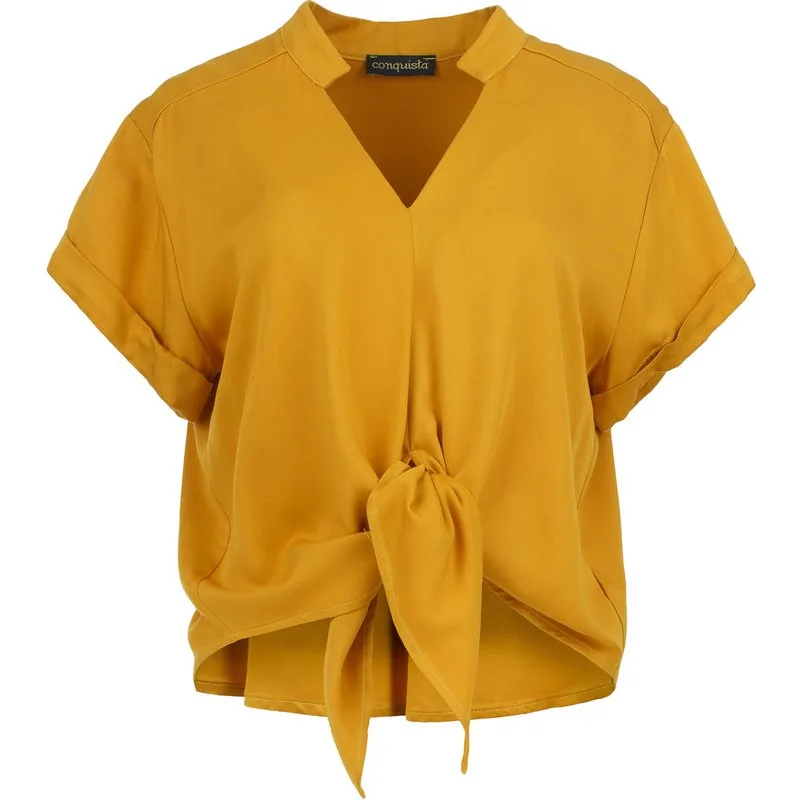 Golden Hour viscose blouse met striksluiting