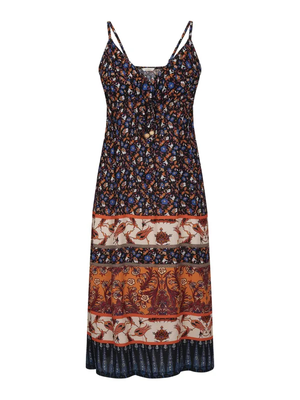Materiaal: Viscose; Halstype: Ronde hals; Motief: Bloemenprint; Soort bandjes: Spaghettibandjes; Lengte: 3/4 lengte; Pasvorm: Normale pasvorm; Armlengte: Mouwloos