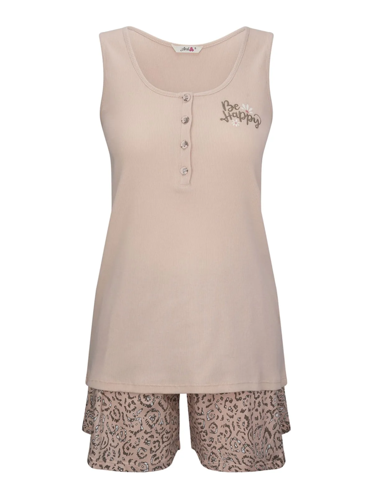 Specificaties: Goldenbay Korte pyjama ‘ Liatris ‘ beige / pink