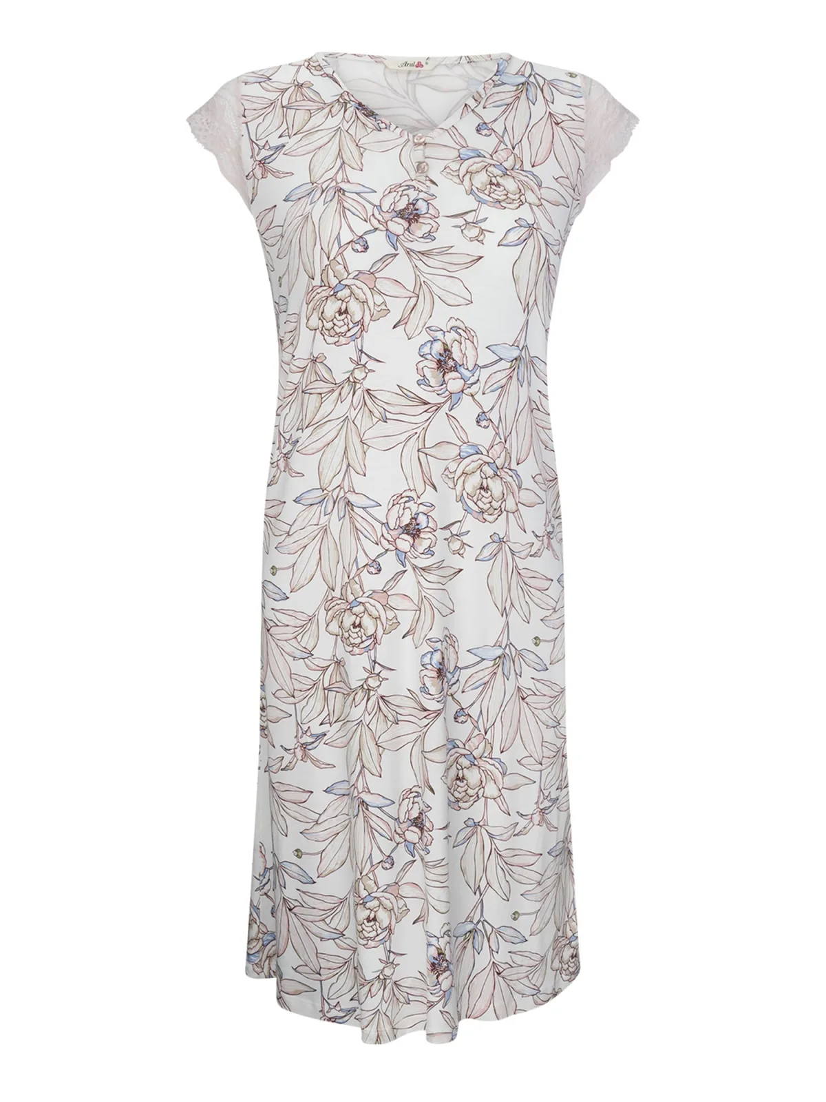 Materiaal: Viscose; Motief: Bloemenprint; Details: Kant; Lengte: Knielengte; Armlengte: Kwartmouw