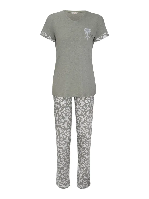 Goldenbay Pyjama ‘Cosmos’ grijs / groen / mintgroen / wit