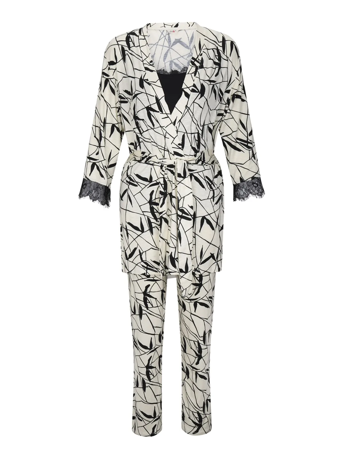 Goldenbay Pyjama ‘ Gown, Camisole & Pants Petunia ‘ zwart / wit