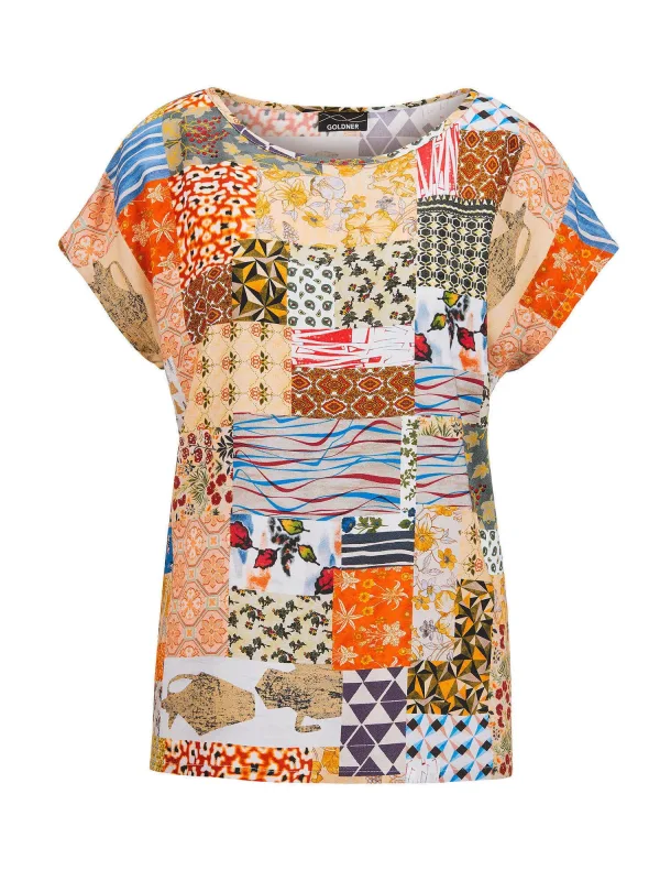 Goldner Bedrukte blouse Luchtige viscose blouse met patchprint