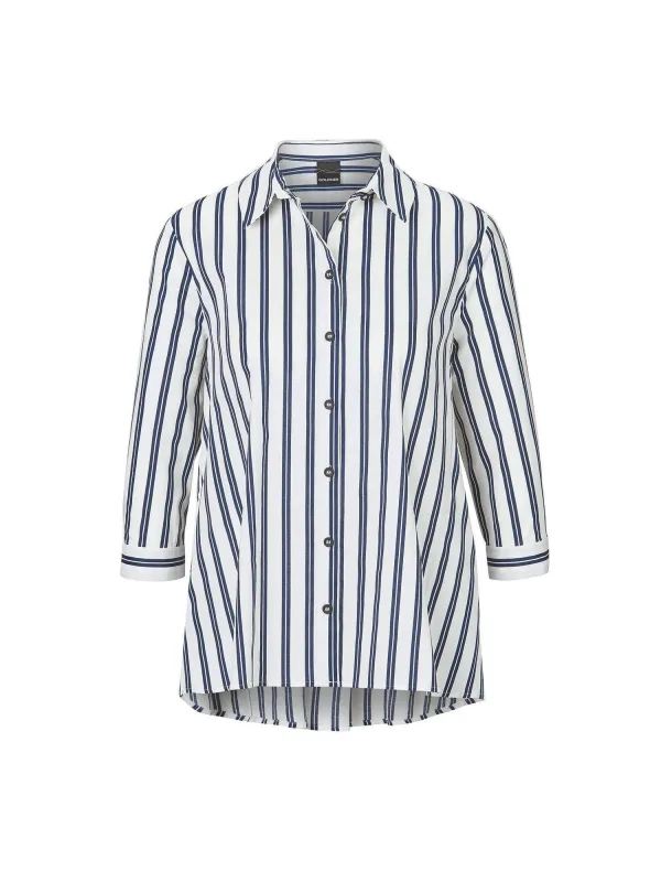 Blouse type: Klassieke blouse; Type sluiting: Knoopsluiting; Materiaal: Katoen; Motief: Gestreept; Kraag: Kentkraag; Pasvorm: Losse pasvorm; Armlengte: Driekwart mouw; Lengte: Lange pasvorm