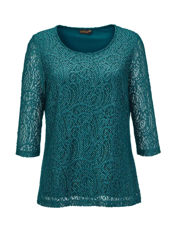 Blouse type: Blouseshirt; Type sluiting: Open; Materiaal: Viscose; Motief: Effen; Kraag: Zonder kraag; Details: Kant; Pasvorm: Normale pasvorm; Armlengte: Driekwart mouw; Lengte: Normale lengte